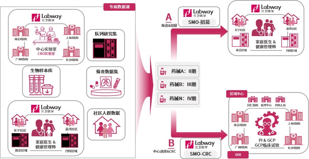 依托数据湖与区域中心网络,兰卫医学构建出覆盖受试者招募—中心选择—入排管理—随访追踪的全流程SMO服务体系。