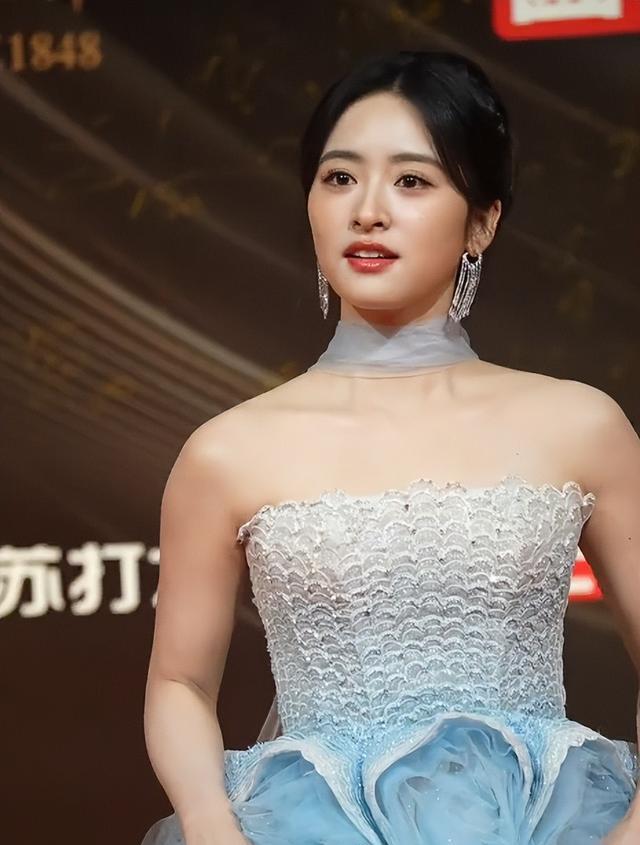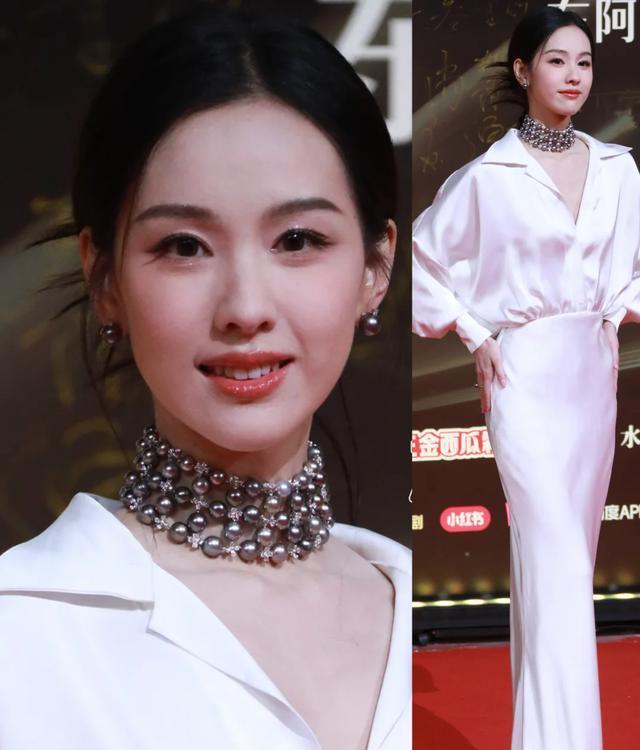 她的长相是出了名的精致,皮肤白得发光,走红毯时姿势优雅。