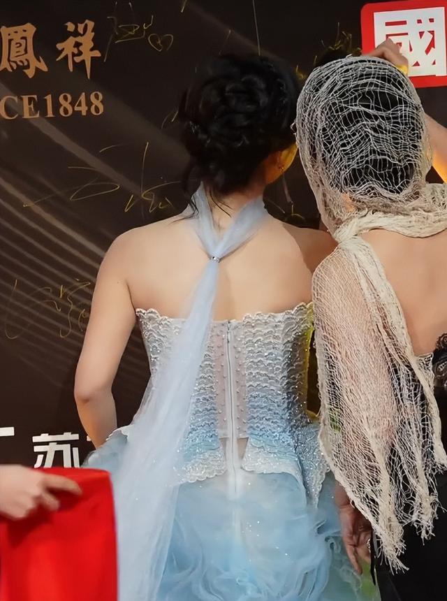 在国剧盛典上连换两套礼服,每一件都暴露着肥嘟嘟的胳膊,还有粗粗的腰身。