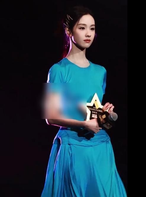 可在内场的时候,她就穿着一件像秋衣那样薄薄的蓝色礼裙,材质没光泽,走动时褶皱乱飞。