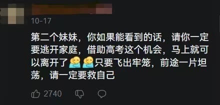 而那个被严苛的母亲步步紧逼的高中女孩,虽然在民警主持下与母亲达成了新的家庭约定,网友们仍纷纷留言告诉女孩,“如果你能看到的话,一定要逃离原生家庭。”