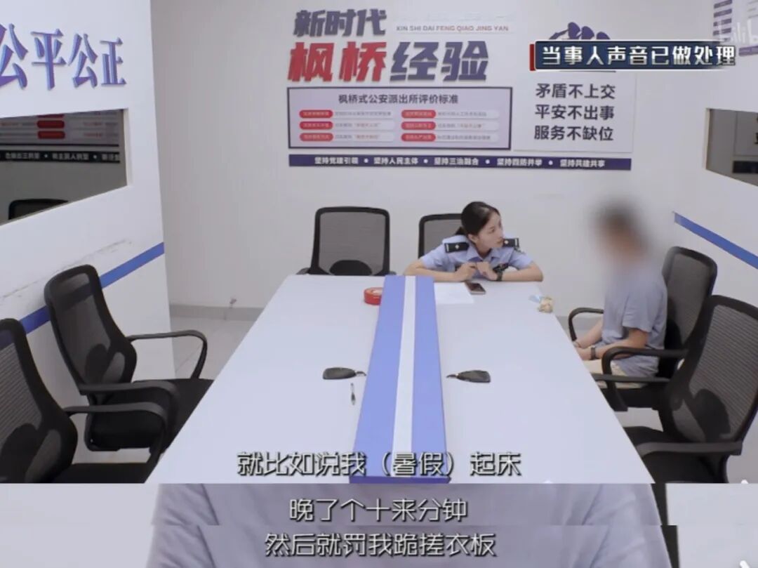 高中生只因暑假没准时起床,就被严厉的母亲罚跪搓衣板。