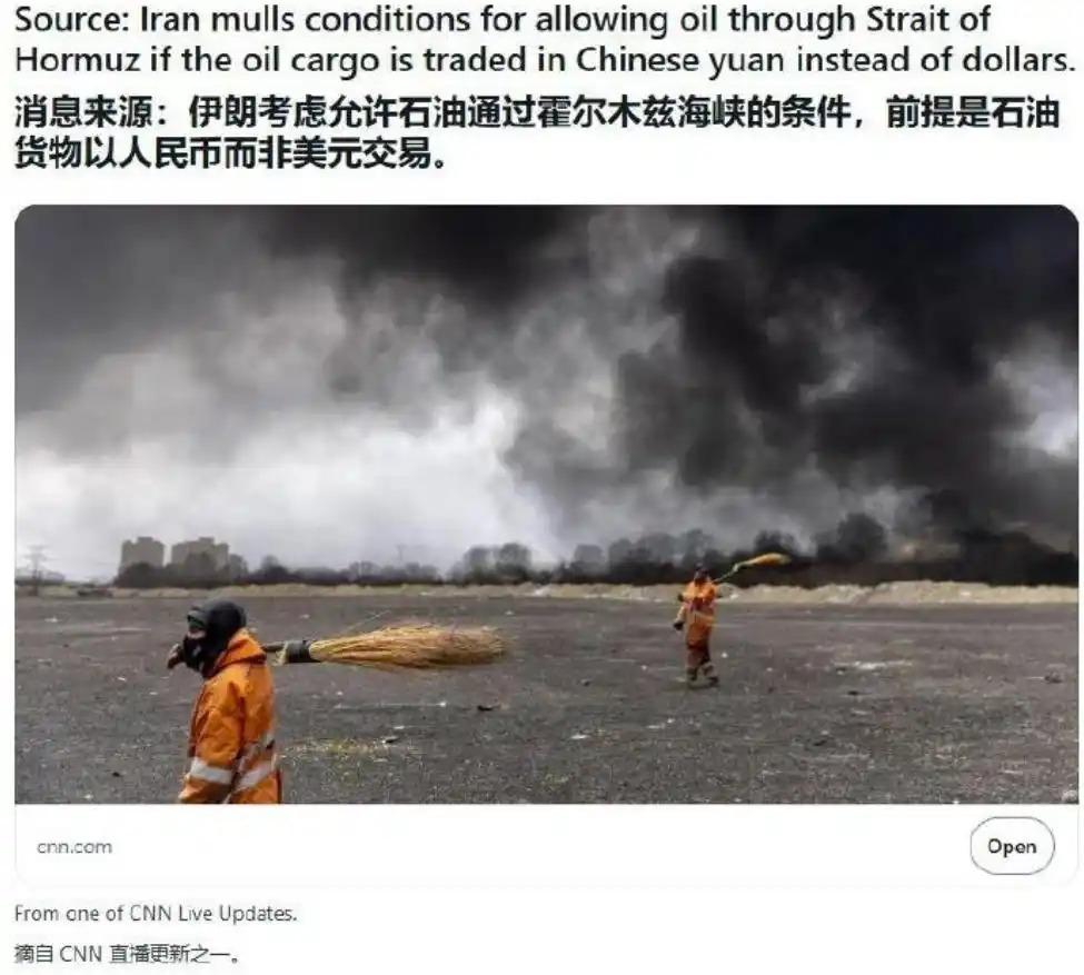 据彭博社、CNN等美国媒体报道,伊朗要求通过霍尔木兹海峡的货物必须使用人民币结算。b/p>